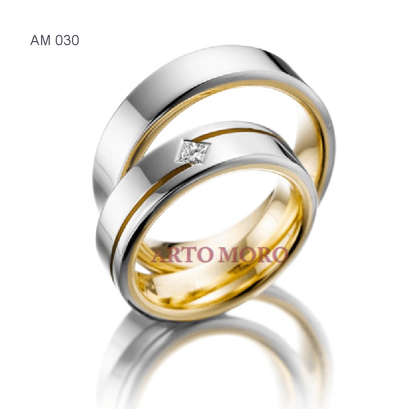 Cincin couple terlihat mewah  dan elegant dengan paduan warna kuning dan putih ditengahnya. Cincin bermatakan permata di tengahnya berjumlah 1 buah di bagian wanita dan polos di bagian pria. Cincin dapat di ukir nama di bagian dalam cincin.  Cincin sangat cocok untuk cincin tunangan dan cincin kawin.